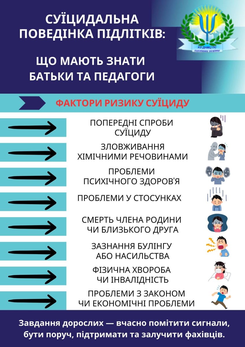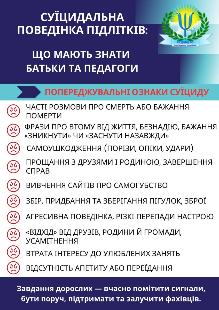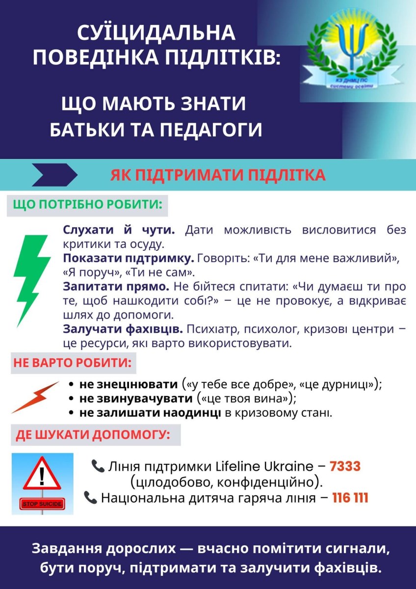 Дорослі учасники освітнього процесу – батьки, педагоги, психологи відіграють ключову роль у збереженні життя здобувачів освіти.