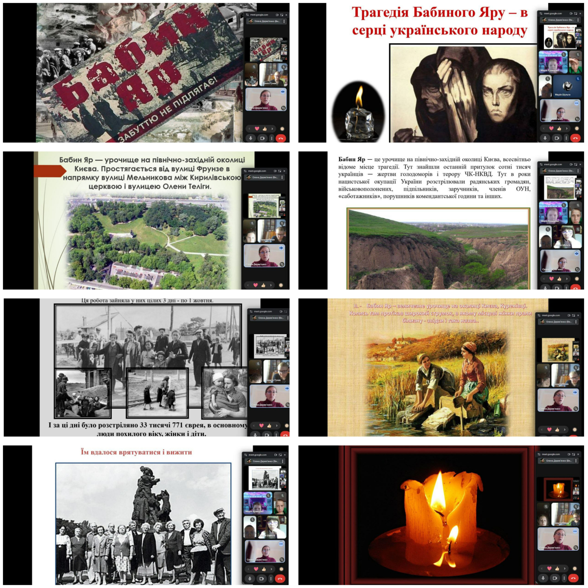 Вчителі Олена Дерев’янко та Максим Савін провели тематичні уроки «Трагедія Бабиного Яру» для учнів 5-10 класів. Під час занять досліджували події, що відбулися восени 1941 року в Києві, коли в урочищі Бабин Яр нацисти розстріляли десятки тисяч мирних жителів лише за їхнє походження чи переконання. Школярі переглянули історичні матеріали, обговорили свідчення очевидців та вшанували пам’ять загиблих хвилиною мовчання.
