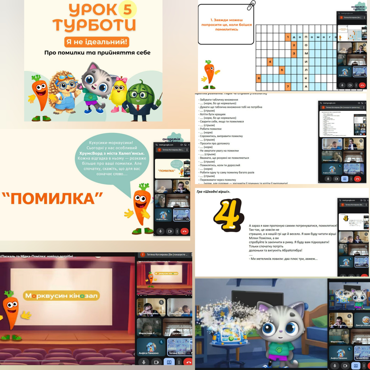 Але цього разу діти подивилися на помилки інакше. Разом із Котиком Паскалем та Мілкою-Помілкою вирушили до Морквусиного Кінозалу, де через історію героя впізнавали власні переживання. Під час обговорення звучали щирі дитячі думки: «Йому було соромно…», «Він боявся, що з нього сміятимуться…».