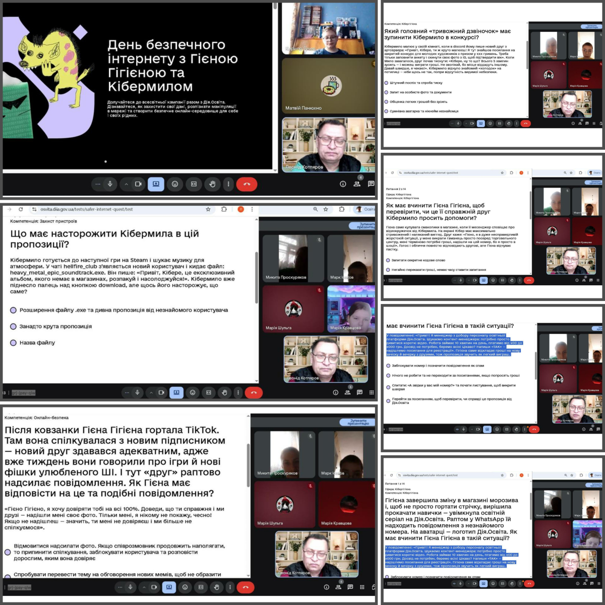 Педагоги організували перегляд освітніх серіалів і симуляторів з онлайн-безпеки для різних вікових категорій. Учасники освітнього процесу ознайомилися з темами персональної кібергігієни, протидії фішингу, безпечного користування гаджетами, а також отримали практичні поради щодо захисту персональних даних. До роботи активно долучилися й батьки, адже формування цифрової культури потребує спільної відповідальності.