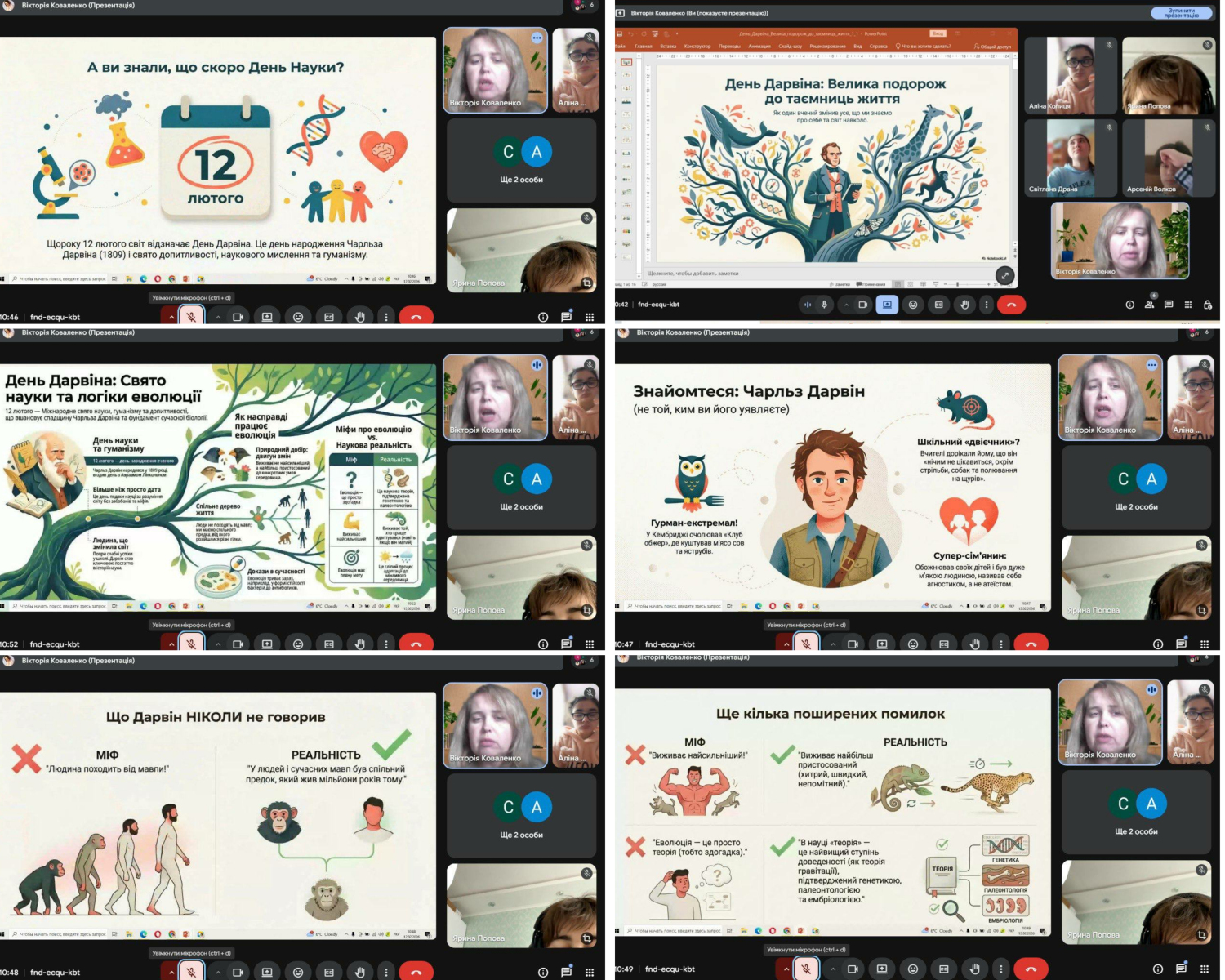 12 лютого вчителька біології Вікторія Коваленко провела інтерактивні уроки, присвячені життю та науковій спадщині Чарльза Дарвіна, а також фундаментальним принципам біологічної еволюції.