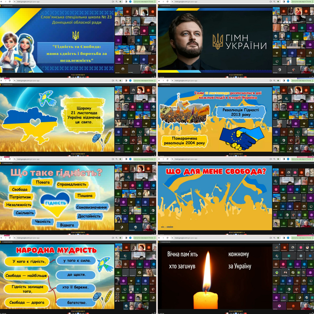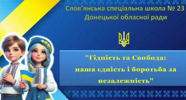 З нагоди національного свята Олена Дерев’янко спільно з учнями 5-А класу провели загальношкільний онлайн-захід «Гідність та свобода: наша єдність і боротьба за незалежність».