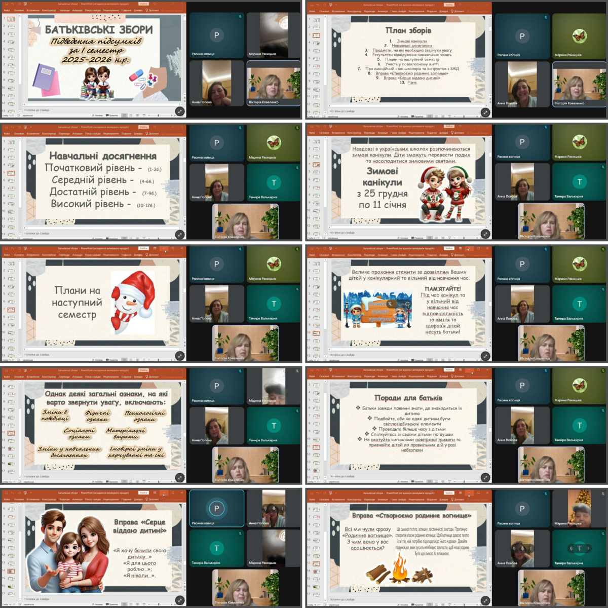 Важливим акцентом зустрічей стало посилення взаємодії «вчитель – учень – батьки» як умови своєчасного реагування на освітні втрати та підтримки навчальної мотивації, а також формування навичок ефективного таймменеджменту. Саме партнерство між школою та родиною було визначено фундаментом для підвищення якості освіти та гармонійного розвитку дитини.