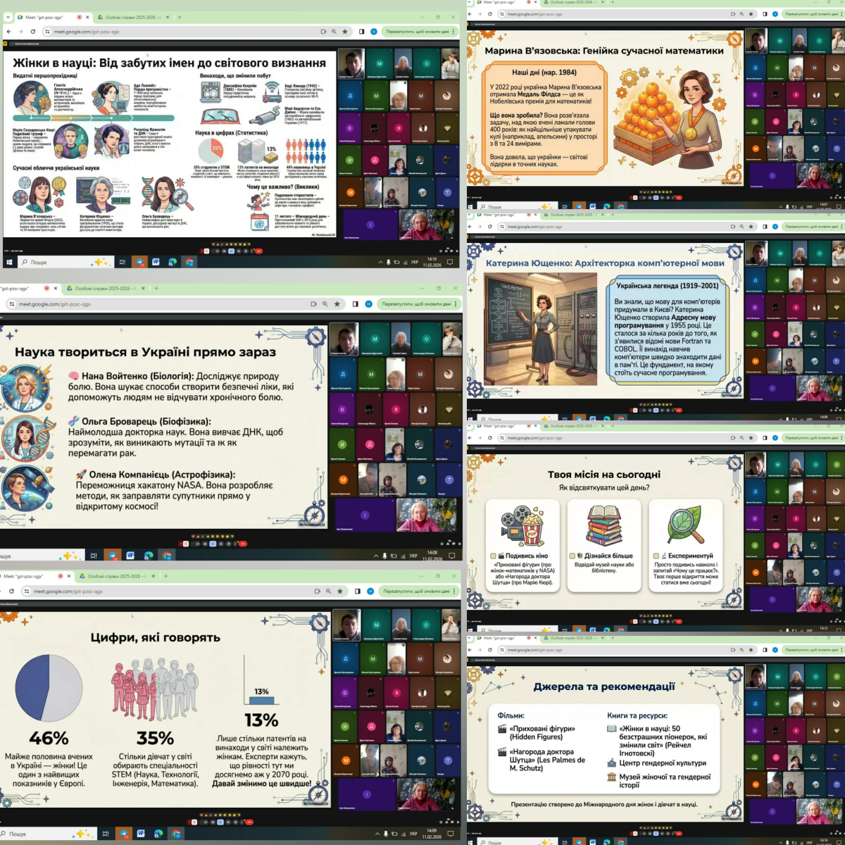 Під час обговорення учні простежили шлях жінок у науці – від часів, коли їхні імена залишалися в тіні, до сучасності, коли їхні відкриття отримують світове визнання. Особливо важливою стала думка: науці потрібні дівчата, адже сучасний світ стикається зі складними викликами, а різноманітність ідей та поглядів допомагає знаходити нові рішення.