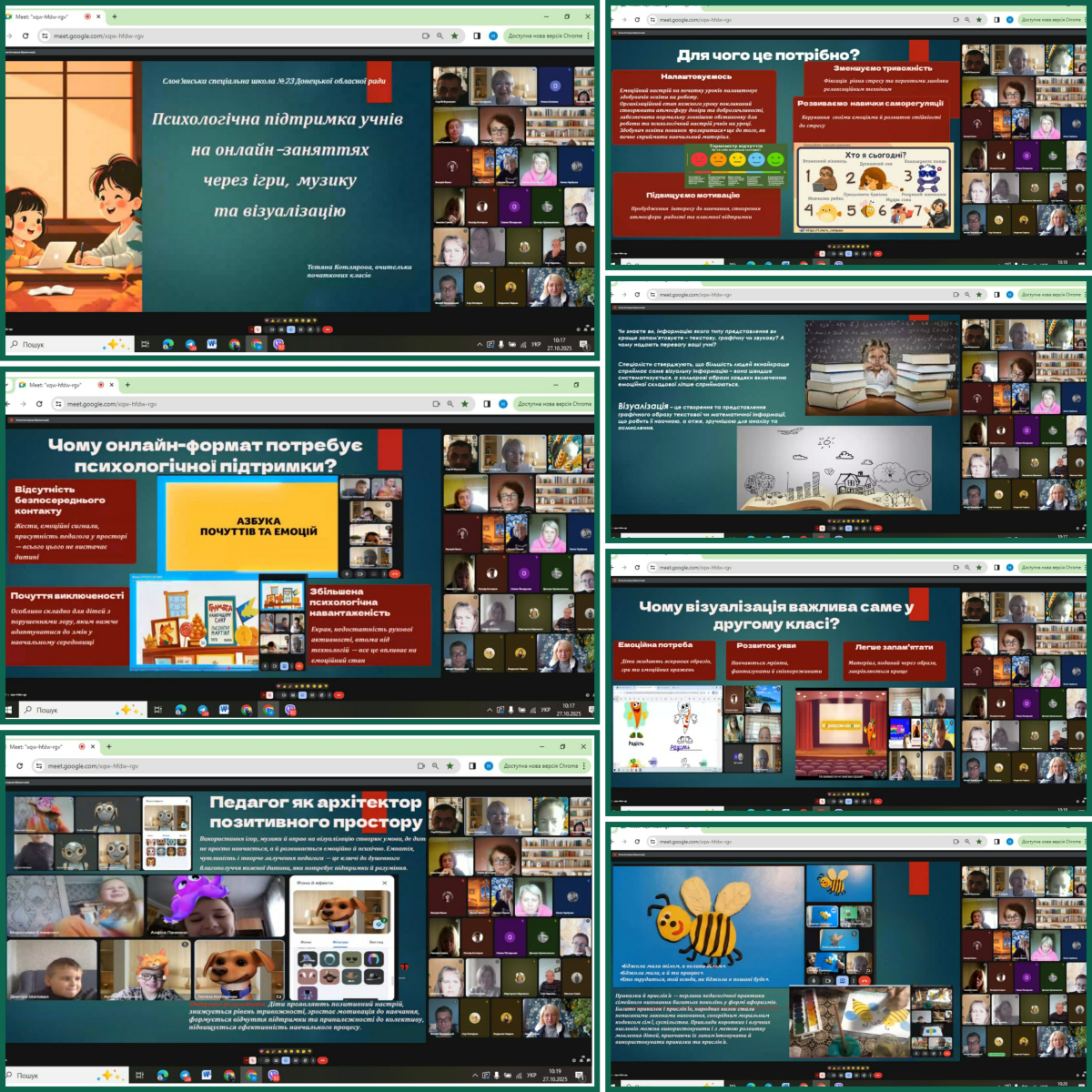 Тетяна Котлярова, вчителька початкових класів, поділилася практичним досвідом використання ігрових і музичних методик, елементів арттерапії, вправ на релаксацію й візуалізацію під час онлайн-занять. Котлярова Т. підкреслила, що навіть короткі емоційні паузи можуть суттєво покращити сприйняття навчального матеріалу та настрій дітей початкової школи.