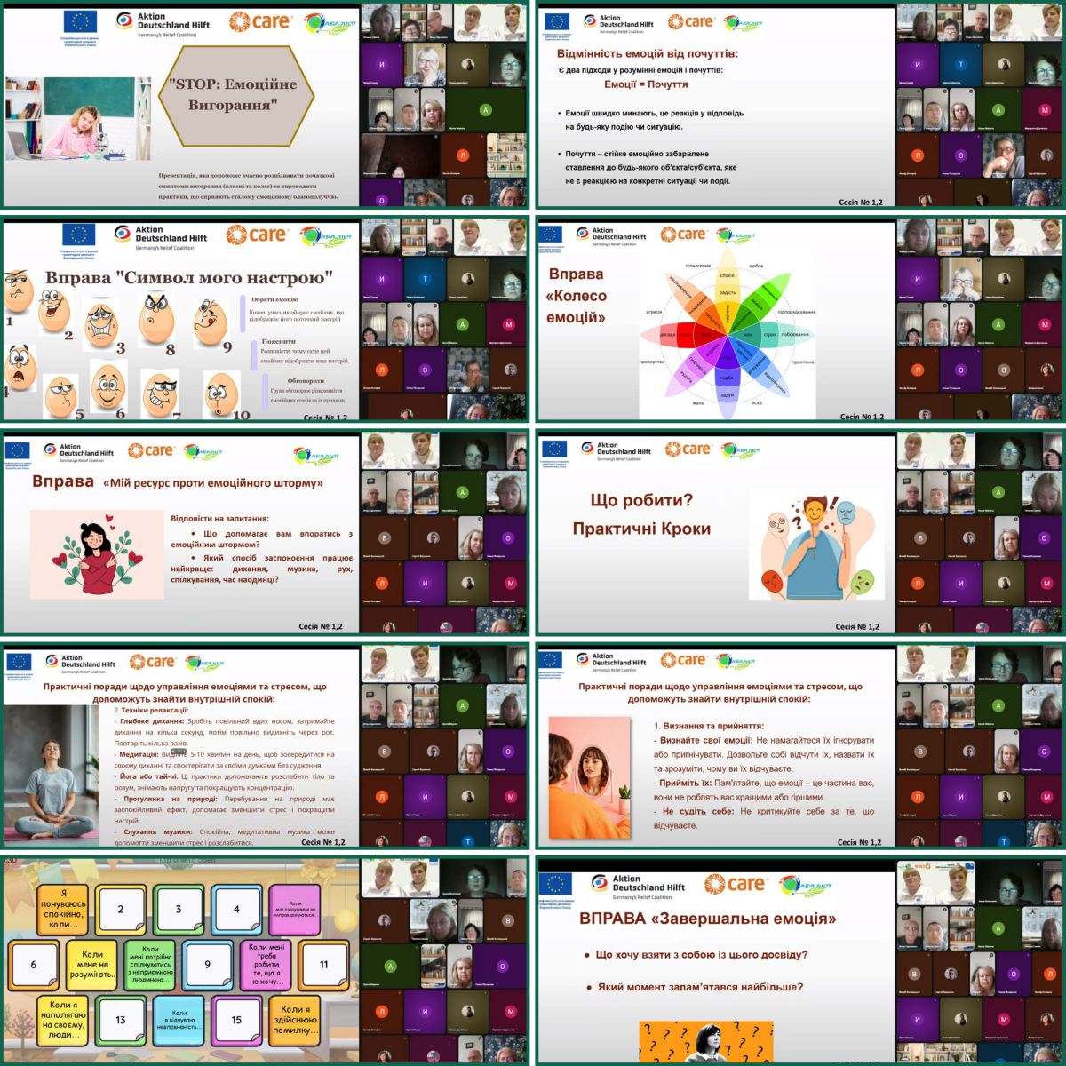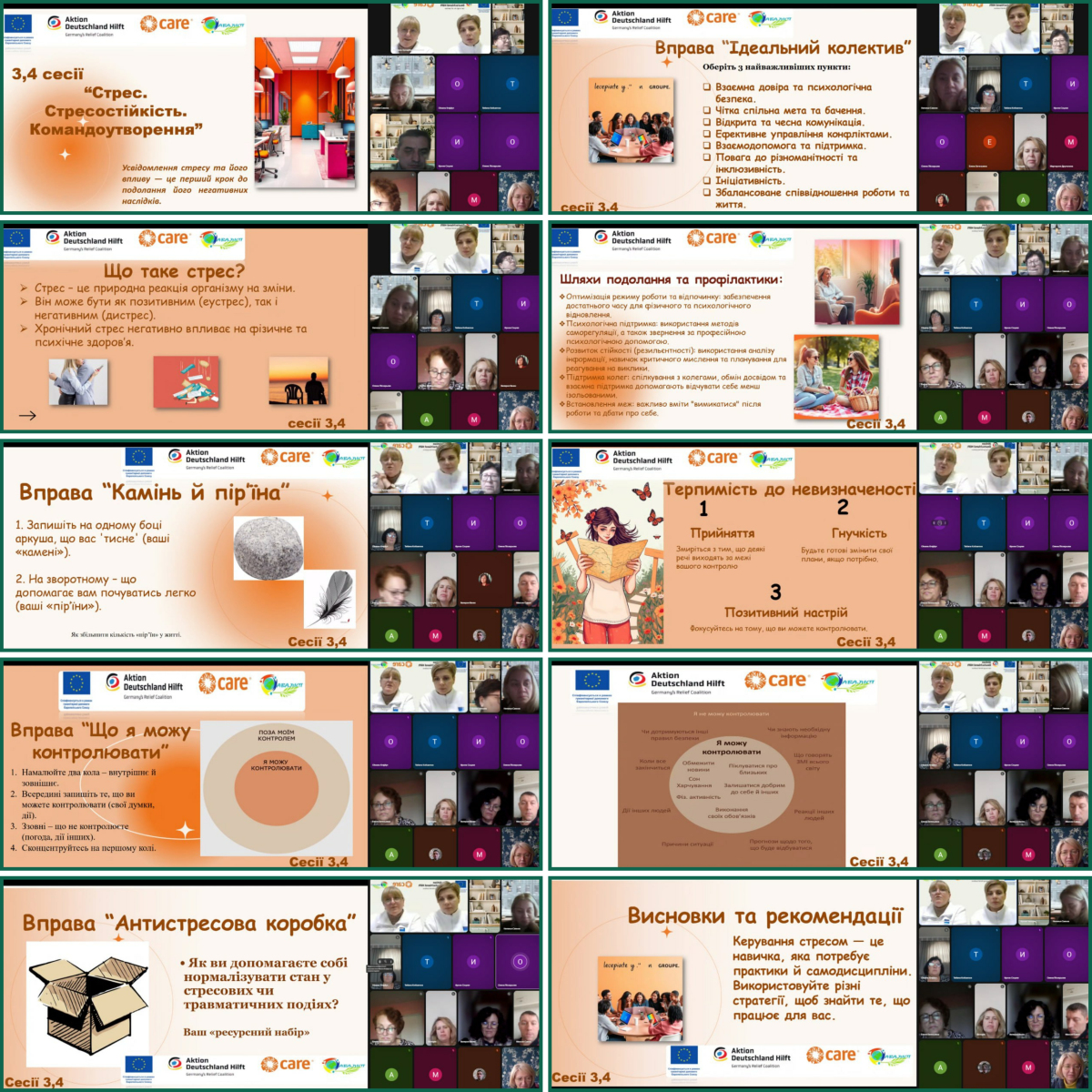 Під час зустрічей учасники виконували практичні вправи, обговорювали типові сигнали емоційного виснаження, вчилися розпізнавати ознаки стресу та вигорання – як власні, так і колег. Особливу увагу було приділено технікам керування емоціями, профілактиці стресу й методам підтримання внутрішньої рівноваги, що є надзвичайно важливим у реаліях воєнного часу, коли кожен перебуває в постійному напруженні.