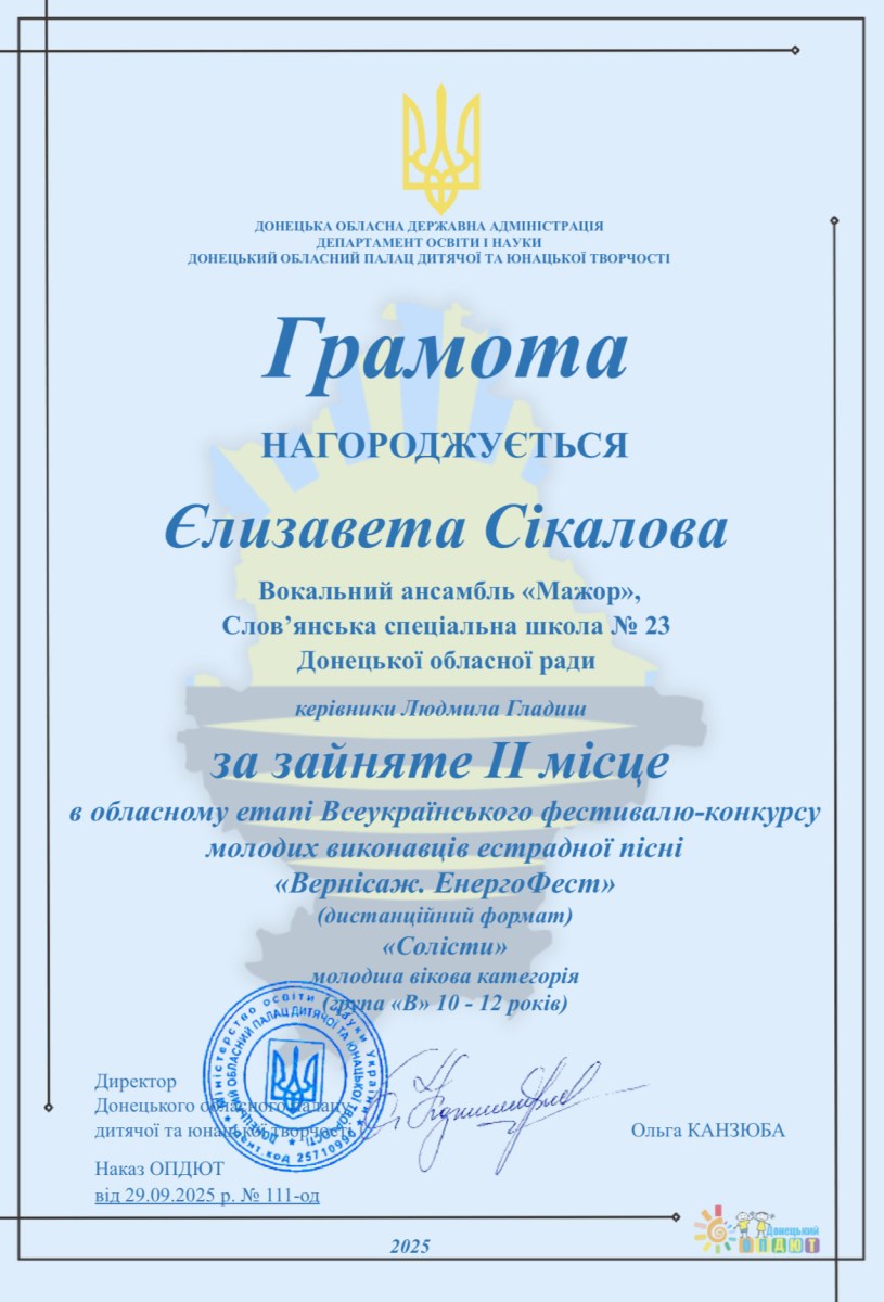 - Єлизавета Сікалова – ІІ місце;