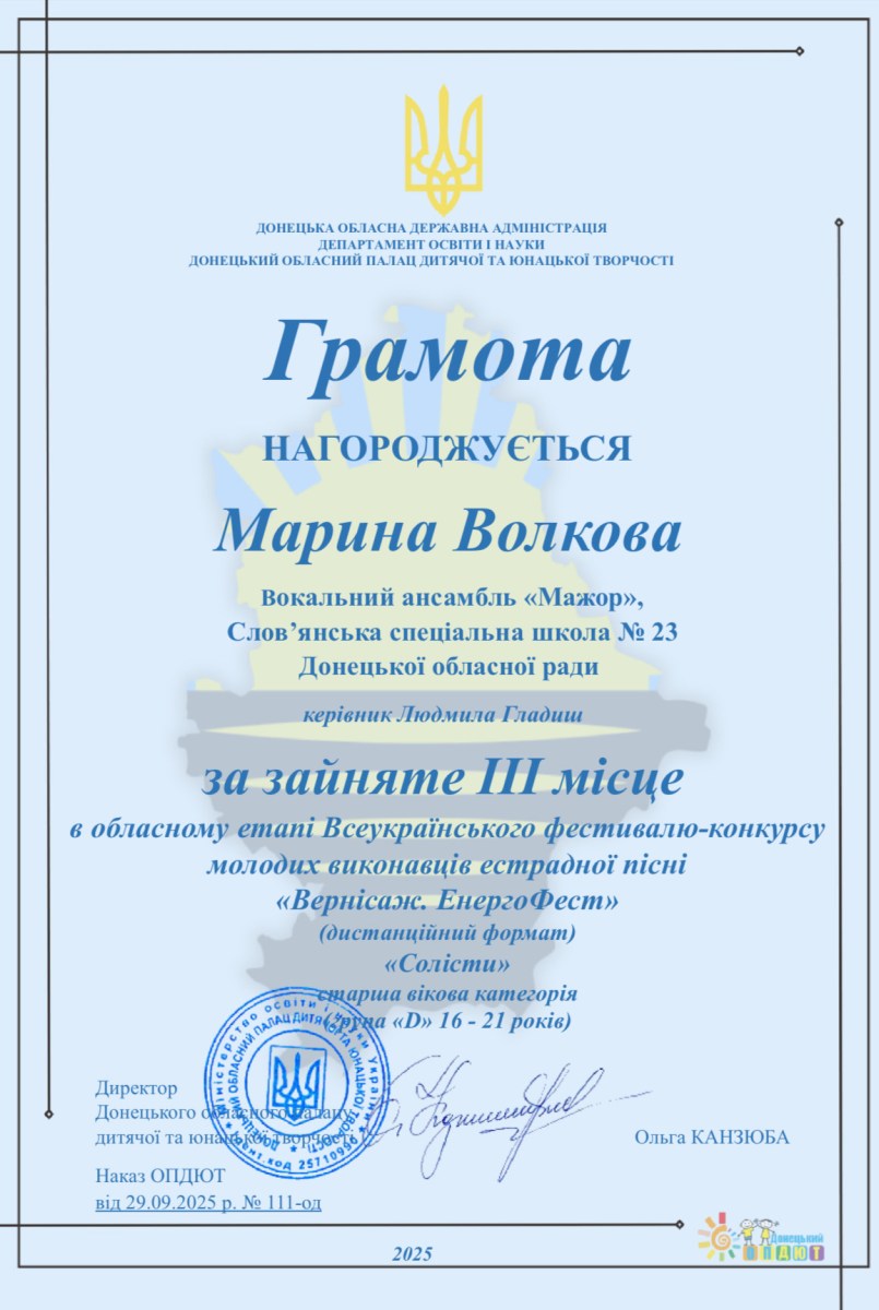 - Марина Волкова – ІІІ місце.