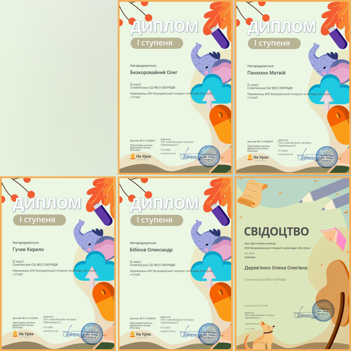 Учні 5-А та 6-А класів долучилися до Всеукраїнської інтернет-олімпіади освітньої платформи «На Урок» з історії під керівництвом учителя інтегрованого курсу «Досліджуємо історію і суспільство»– Олени Дерев’янко.