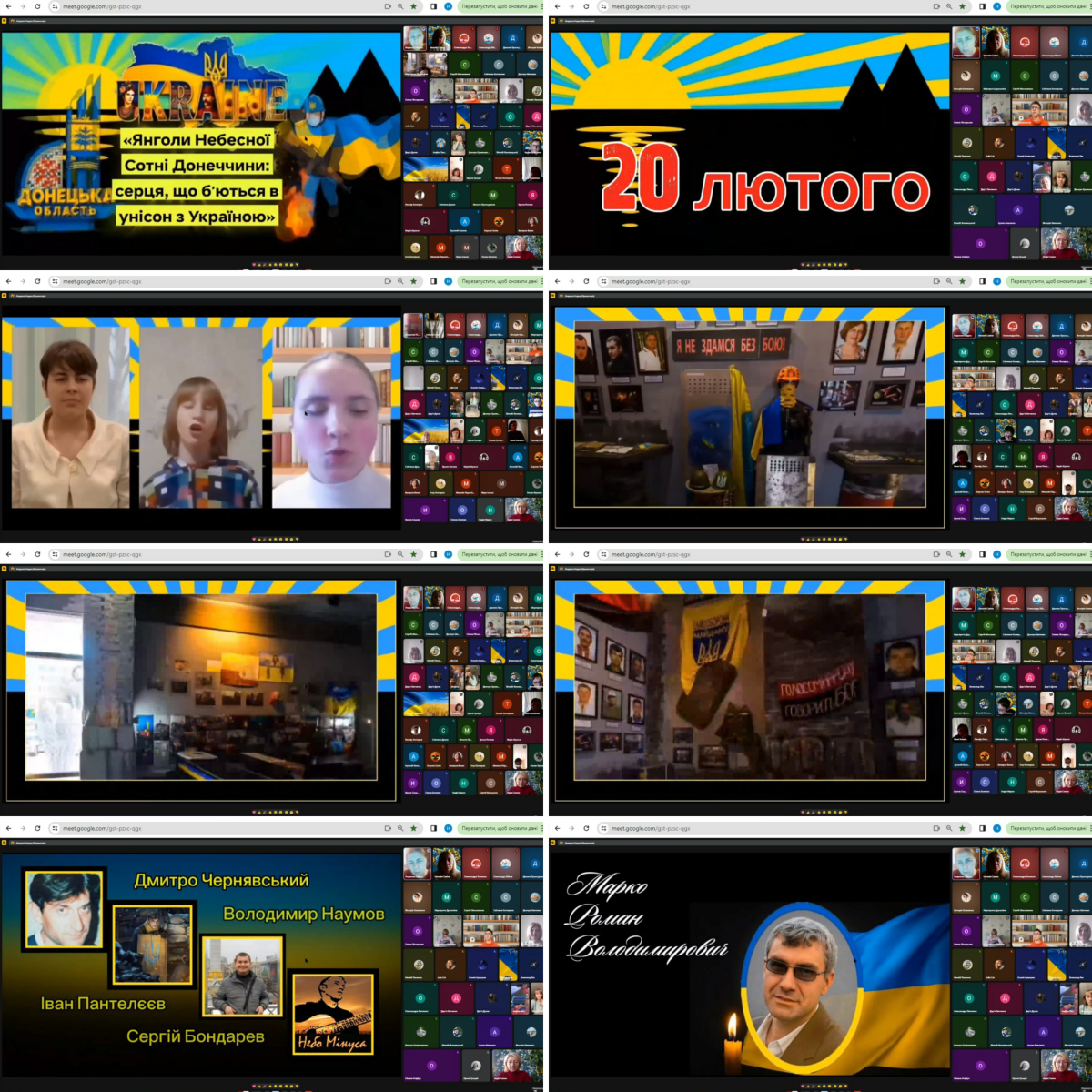 20 лютого 2026 року з нагоди Дня Героїв Небесної Сотні педагоги Людмила Гладиш і Наталія Савіна разом зі здобувачами освіти провели для шкільної спільноти змістовний і глибоко емоційний онлайн-захід «Янголи Небесної Сотні Донеччини: серця, що б’ються в унісон з Україною».