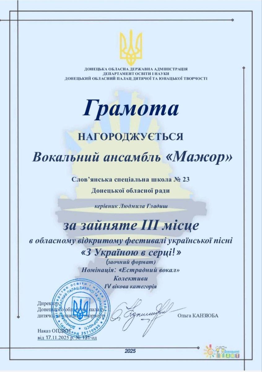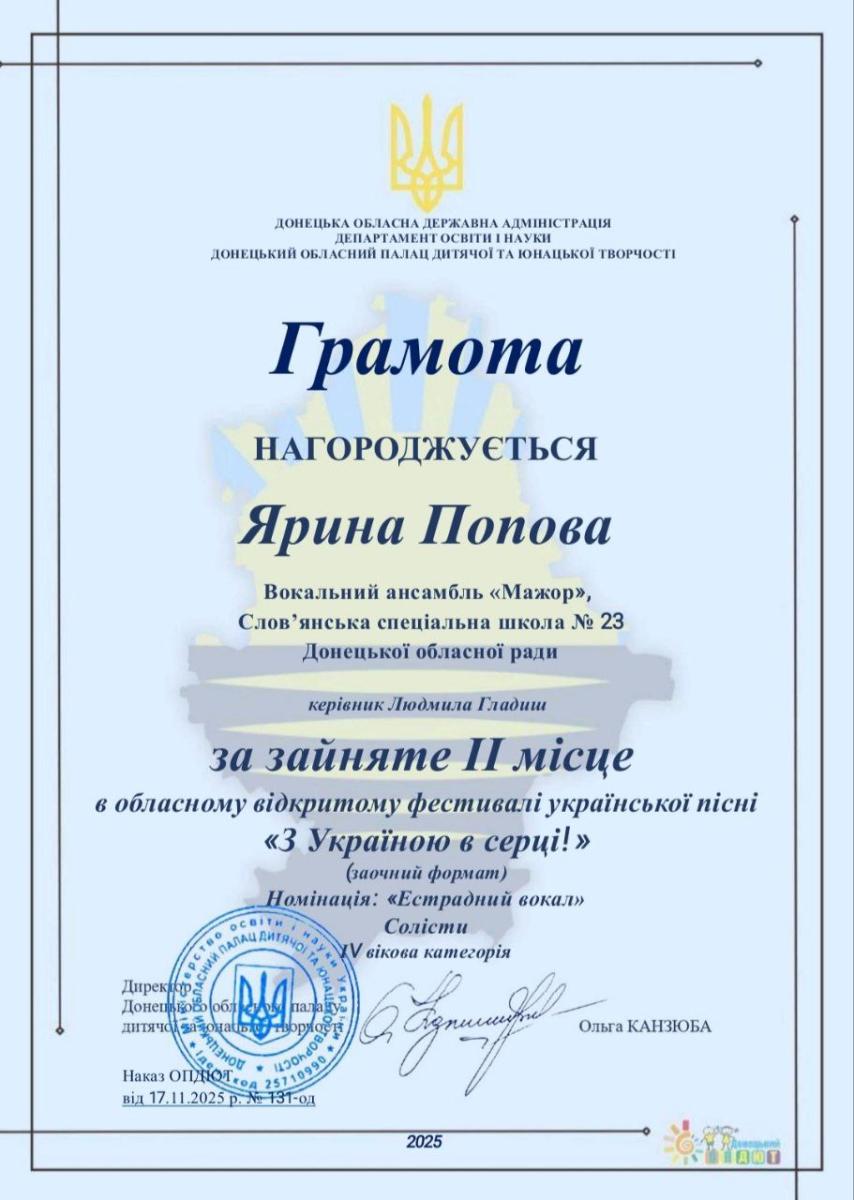 Упродовж серпня – листопада 2025 року Донецький обласний палац дитячої та юнацької творчості провів щорічний відкритий фестиваль української пісні «З Україною в серці!»